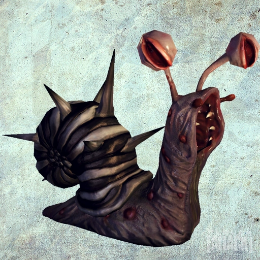 A Darksnail is what remains of a Snail after it has been severely infected by the Ruin left by the Dollmaker's Infernal Train as it passed overhead above the Vale of Tears, transmogrifying it into the dreaded Vale of Doom. During their transformation their shells have become spiked and they have begun to resort to subsisting on their own bile.