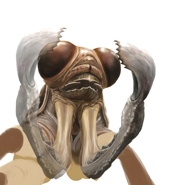 Detail on the Plague Crawler's raptorial mask.