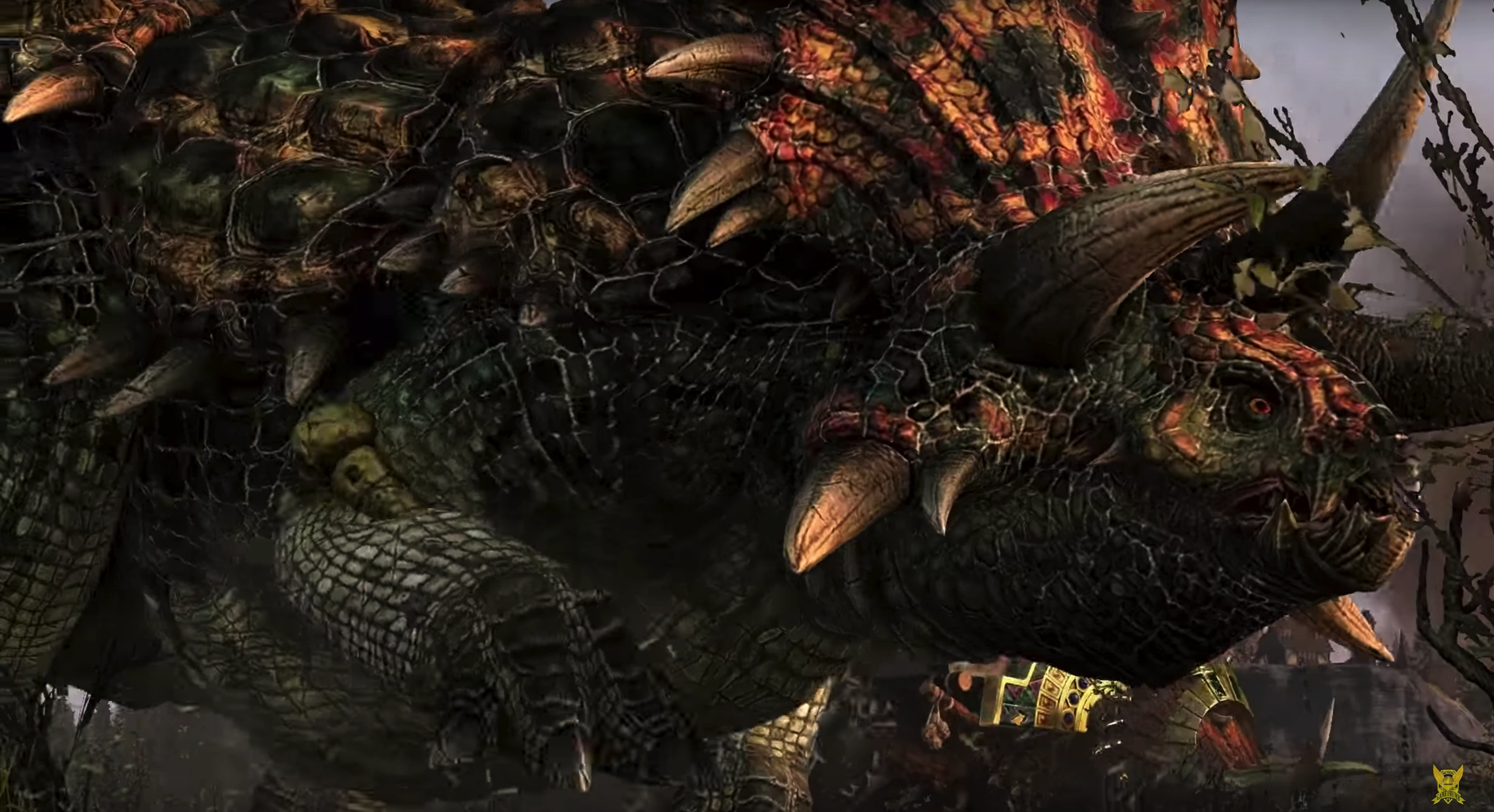 A Stegadon's size compared to a Lupinian.