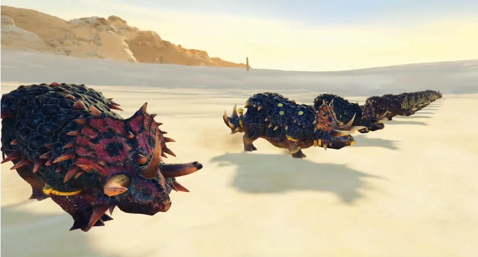 Stegadons are a Species of Omnivorous ceratopsian dinosaurs native to Paradise