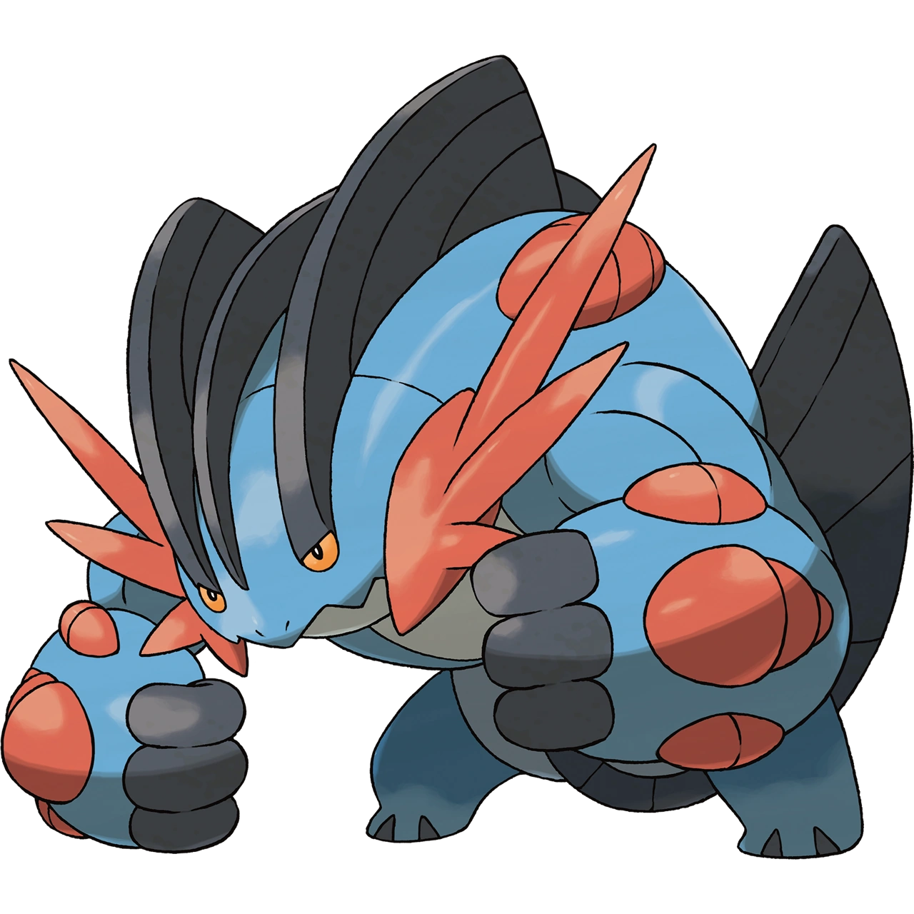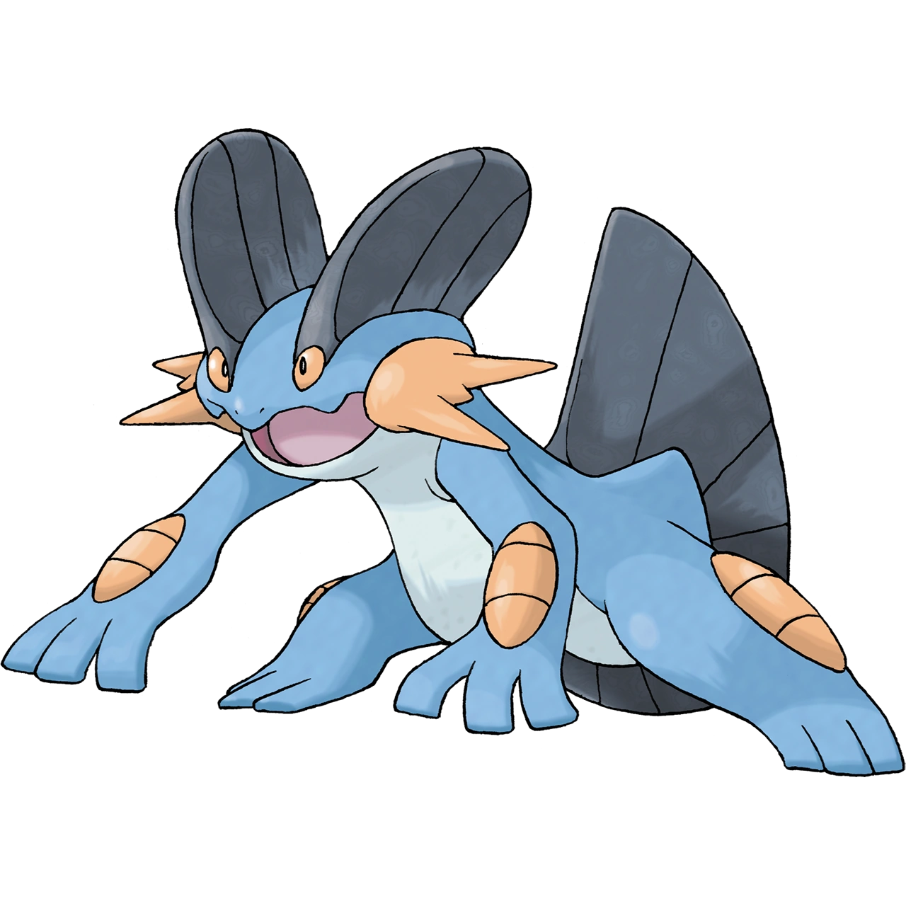 Swamperts are very strong that can easily drag large stone weighing over 1 ton and can swim while towing a large ship. Its arms are hard as rock: With one swing, it can break a boulder into pieces, or they can batter down its foe, inflicting critical damage to its enemies with one blow. This Pokémon also has powerful vision that lets it see even in murky water. It makes its nests at beautiful beaches.