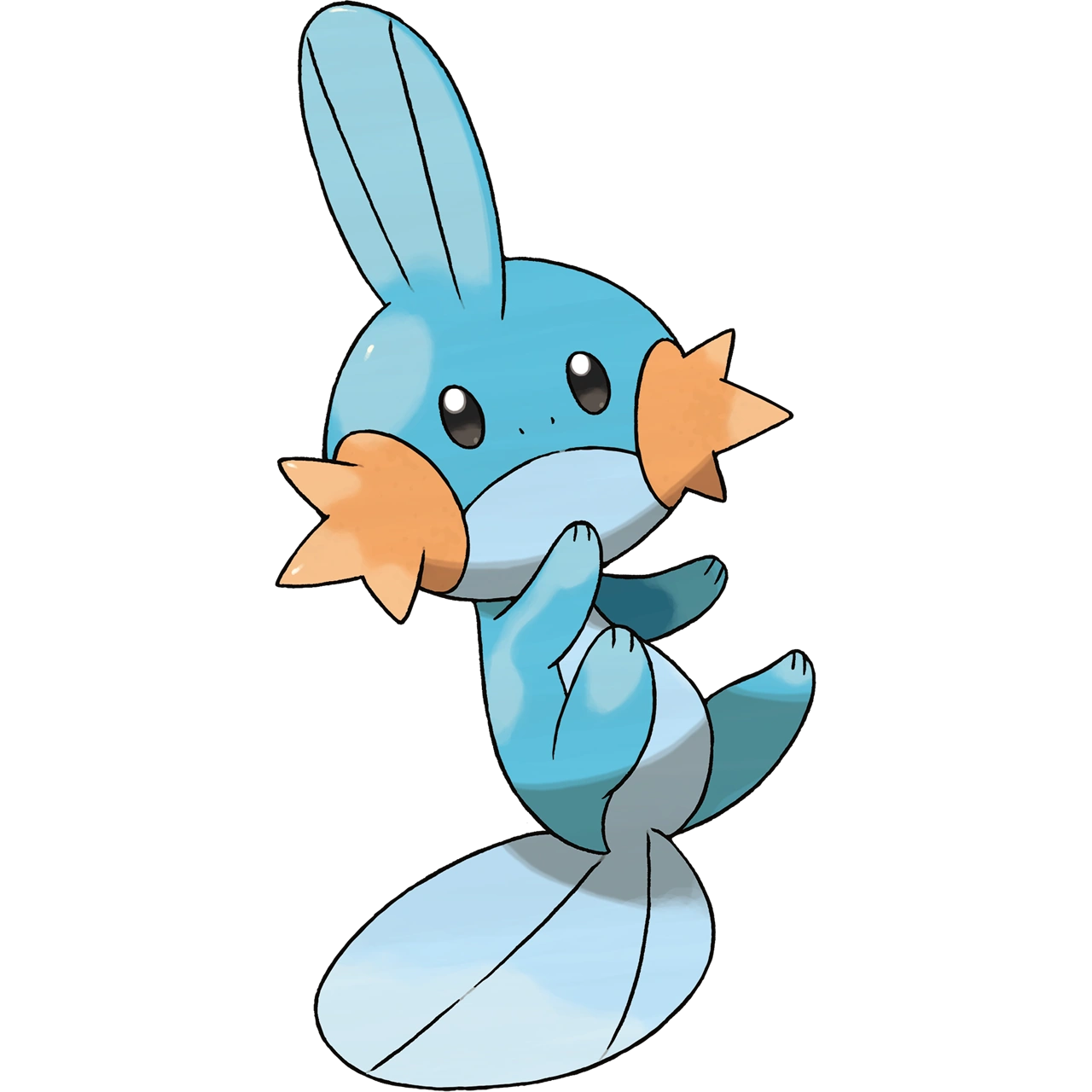 Its large tail fin propels it through water with powerful acceleration and can also point in certain directions. In water, Mudkips breathe using the gills on its cheeks. It rests by covering or burying itself with soil or mud at the water's edge or at the bottom of a river. It is strong in spite of its size: In a pinch this Pokémon can brandish enough power to crush rocks bigger than itself. On land, it has the strength to powerfully heft large boulders by planting its four feet and heaving.