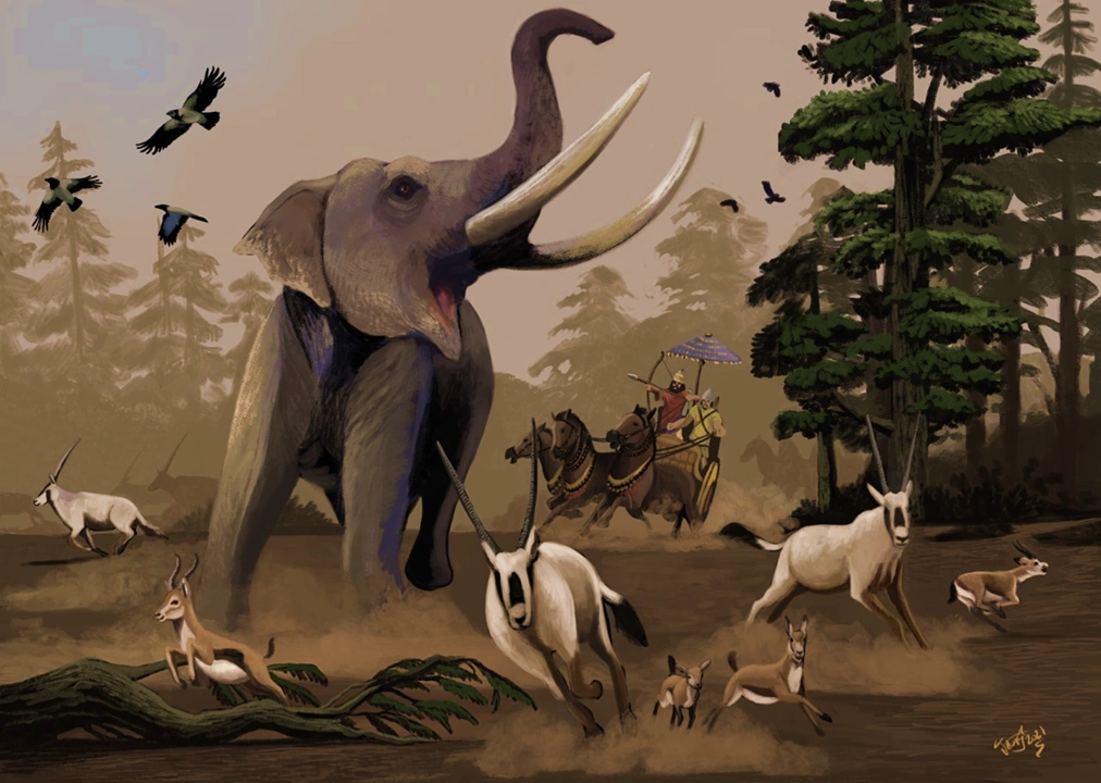 The Syrian or Western Asiatic elephant (Elephas maximus asurus) was the westernmost population of the Asian elephant (Elephas maximus), which went extinct in ancient times, with early human civilizations in the area utilizing the animals for their ivory, and possibly for warfare.[2] Skeletal remains of E. m. asurus have been recorded in the Middle East, notably from Iran, Iraq, Syria, and Turkey, from periods dating between at least 1800 BC and likely 700 BC.[3] Due to the lack of any Late Pleistocene or early to mid-Holocene records for Asian elephants in the region, there are suggestions that the elephants were anthropogenically introduced, or transported, there during the Bronze Age,[3] though this is disputed.[4]